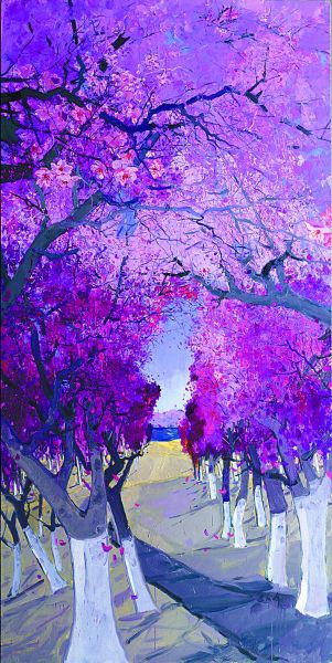 此外,畫家們對(duì)北京四季新景的描繪也頗具匠心。油畫組畫《京華四季》由北京畫院五位畫家共同創(chuàng)作:玉淵潭的春日櫻花落英繽紛;遠(yuǎn)眺夏季通州燃燈塔,郁郁蔥蔥;秋色下的香山紅葉,層林盡染;雪中的北海白塔,銀裝素裹……四季京華美景,盡收其中。