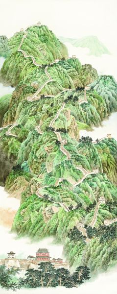 “時(shí)代新風(fēng)”篇章中呈現(xiàn)出北京畫院畫家傾力打造的一系列最新創(chuàng)作,引來眾人交口稱贊!毒┤A新境》由北京畫院山水組畫家創(chuàng)作,四幅北京山水畫構(gòu)圖巧妙,氣勢(shì)宏大。謝永增、劉旭的《雁棲春曉》描繪了北京懷柔雁棲湖春日風(fēng)光;郭寶君、買鴻鈞在《西山擁翠》中以北京西郊郁郁蔥蔥的山景為對(duì)象,青綠疊翠,展現(xiàn)北京自然之美;在《通州新貌》中,牛朝、徐衛(wèi)國以精湛畫技繪制了北京城市副中心通州日新月異的發(fā)展面貌;莊小雷的《長城暢游》氣勢(shì)恢弘又精巧雅致,給古老長城帶來了嶄新氣象。