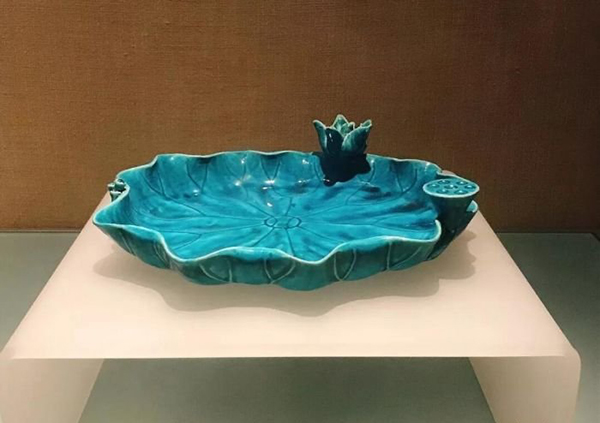 清康熙孔雀綠釉荷葉式洗,現(xiàn)藏首都博物館