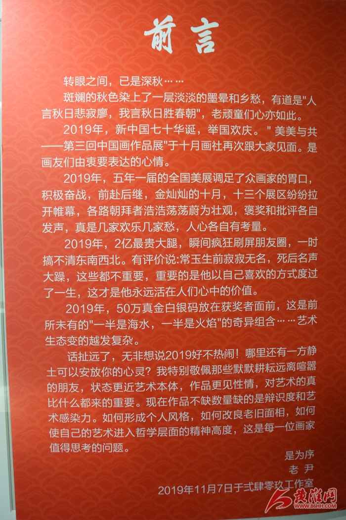 按照慣例,尹成撰寫的《前言》反映了五位“老頑童”第三回中國畫作品展的來龍去脈。