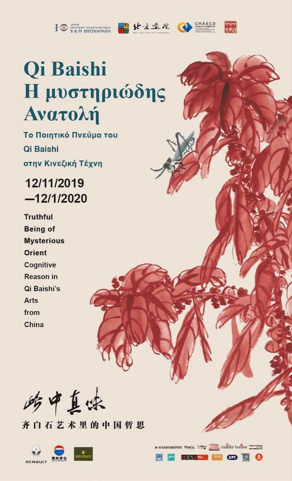此次展覽由北京畫院、B & M Theocharakis 古典藝術(shù)及音樂基金會(huì)、中希經(jīng)濟(jì)文化發(fā)展促進(jìn)會(huì)主辦,展覽將從哲學(xué)角度出發(fā),通過“不似之似”、“象外之意”、“物我之際”三個(gè)板塊,借白石之作,與希臘觀眾討論中國人的形神觀、意境觀與宇宙觀。展期為2019年11月12日至2020年1月12日。