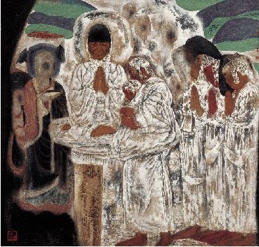 敦煌之夢(mèng)——母親的祈禱(國(guó)畫(huà)) 138×136厘米 1996年 唐勇力