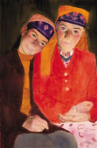 塔吉克兩姐妹(水彩畫) 陳堅(jiān)