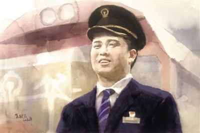 葉獻(xiàn)民水彩畫《鐵路榜樣》——沉穩(wěn)的藏青色,作為職業(yè)氣質(zhì)鮮明的色彩,既折射出中國(guó)鐵路建設(shè)高質(zhì)量發(fā)展的進(jìn)程,更反映出鐵路人嚴(yán)謹(jǐn)認(rèn)真、甘于奉獻(xiàn)的精神面貌。 |