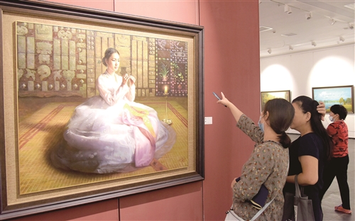 “樸實(shí)無華是朝鮮油畫的可貴之處,其畫風(fēng)清新自然,筆法和用色都反映了獨(dú)特的審美標(biāo)準(zhǔn)。”觀展中的市民趙先生評(píng)價(jià)道,“不論是純凈唯美的風(fēng)景畫,還是端莊婉約的人物畫,總能帶給欣賞者一種安詳、寧靜、甜美、清新的審美體驗(yàn)。”