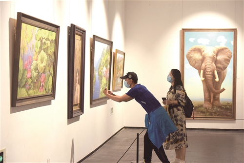 觀展市民在畫作前流連忘返。 徐報(bào)融媒記者 孫井賢 攝