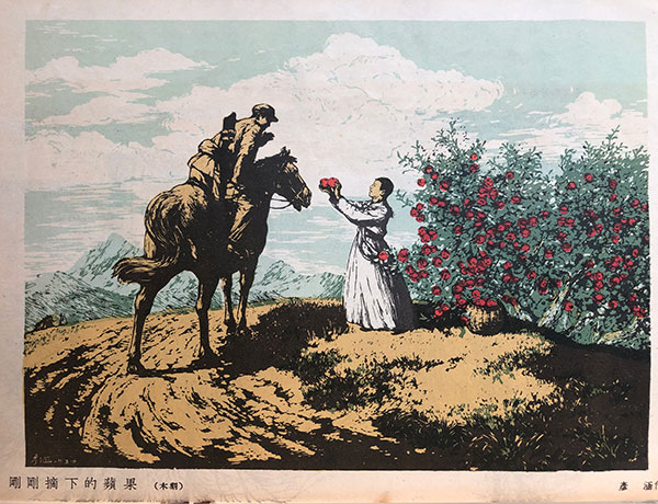 彥涵 木刻《剛剛摘下的蘋果》20世紀(jì)50年代