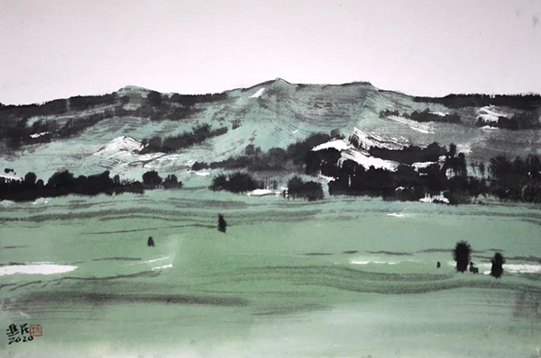 但是,應(yīng)該承認(rèn),作為圖象記錄的繪畫,特別是中國文人引以為傲的山水畫,在這樣一個中國文化和中國疆域持續(xù)向第二臺地和第三臺地擴(kuò)展的歷史進(jìn)程中,相對于文字記錄的詩詞和聲律記錄的音樂,其緊隨歷史足跡的節(jié)奏確實是相形見絀的。筆墨也好,圖式也好,耽溺于煙雨江南的丘陵和湖泊確實太久了!因此,我給于趙望云以及以他和石魯為代表的“長安畫派”以極高的評價,他們發(fā)現(xiàn)了山水圖式的西北之境,而且發(fā)明了筆墨表現(xiàn)的西北之美。后來繼起者無數(shù),尤以張仃和李寶林二位先生能持之以恒,對大西北山水的圖象塑造深入研究,于西北山水畫之境與格又上層樓。