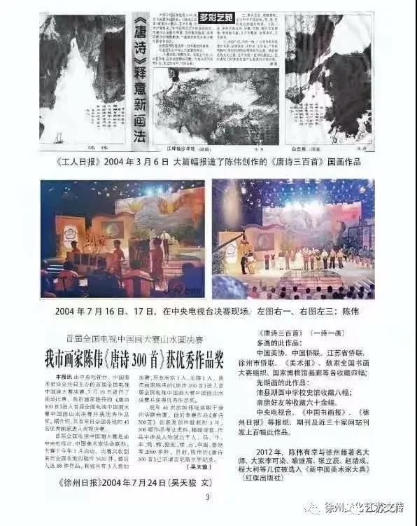 陳偉,1975年始師從原中國美術出版總社總編、現(xiàn)全國美術大家程大利學習美術創(chuàng)作,期間有十余幅作品參加省、地、縣畫展,作品先后被省美術館、母校校史館等收藏,其所創(chuàng)作的《唐詩三百首》(一詩一畫)整套作品入選中國美協(xié)、央視《首屆全國電視中國畫大賽》,且進入決賽榮獲優(yōu)秀獎;近30幅作品被中國美協(xié)、中國僑聯(lián)、省、市及全國書畫大賽組織收藏,作品《中國人民反倭抗日史詩畫錄》60幅國畫被中國人民抗日戰(zhàn)爭紀念館收藏。