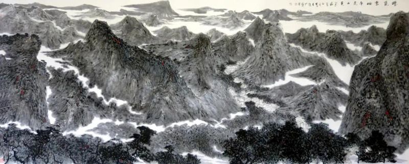 中國當(dāng)代水墨藝術(shù)以處于中國藝術(shù)史之超循環(huán)之波谷段落而有所失,其失者有二:一者,古典哲思在當(dāng)代藝術(shù)家所遺甚微,其心既無道氣,也便無所謂道氣洋溢,故于天人合一之表現(xiàn)不可與宋元大家相比;二者,學(xué)西藝者多在逼真物象,而中國筆墨材料并不契合于寫實(shí)。故今日中西藝之嫁接者無如民國時(shí)期,何哉?中體不存而西用無著。以歷史之慣性,民國藝術(shù)家天然遺有中體,以其所受教育為中國古典儒釋道者也。如徐悲鴻,西方寫實(shí)技法服務(wù)于中國精神而有《愚公移山》、《徯我后》之陽剛精神之表現(xiàn);如劉海粟,其所作黃山云海其精神亦中國者也。時(shí)至今日,中西合璧之相對完美者幾無,蓋古典精神既于浩劫中喪失殆盡而唯遺無靈魂之畫技,其技術(shù)主義視造型為技法,視筆墨亦為技術(shù),若美院出身者多以筆墨為造型服務(wù),而天人之思無從夢見,如此筆墨既為附屬則中國畫精義大失矣。