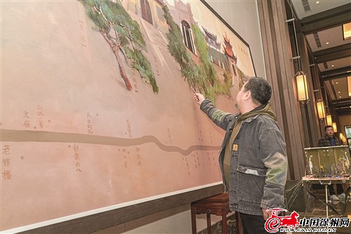 為創(chuàng)作此畫,孫厚搜集了許多歷史圖片和現(xiàn)代攝影圖片,并到實地進(jìn)行寫生,數(shù)易其稿,“這幅畫是一個橫長的構(gòu)圖,我盡量尋找好透視關(guān)系,從高到低,盡可能地將7個景點合理地用繪畫的方式集于一圖,展示好文脈徐州的氣象。” |