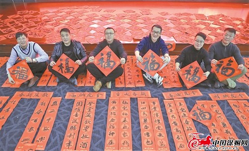 寫(xiě)春聯(lián)、送祝福是徐州美術(shù)館新年藝術(shù)展的重要工作之一,連日來(lái),來(lái)自徐州各行業(yè)的知名書(shū)法家在美術(shù)館一樓多功能廳的畫(huà)案前書(shū)寫(xiě)春聯(lián)和福字。寫(xiě)有吉祥祝語(yǔ)的紅色宣紙一次次地鋪滿大廳地板,工作人員待其墨跡干透后,仔細(xì)將這些“溫暖的祝福”折疊好,由美術(shù)館的送春聯(lián)小分隊(duì)分批送到全市60多個(gè)社區(qū)、廠礦、街道的一線工作人員手上。徐州美術(shù)館策展人表示,為群眾義務(wù)寫(xiě)春聯(lián)、送福到萬(wàn)家,這項(xiàng)活動(dòng)已堅(jiān)持了10年,美術(shù)館發(fā)揮自身特長(zhǎng),用這種溫暖的方式向基層工作人員表達(dá)深深的祝福。 |