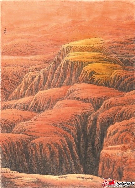 賈又福先生教導(dǎo)“以石觀畫”,自然界的山水是永恒不變的,變化的只是時(shí)代,而不同時(shí)代的人對(duì)山水的感受也不同,時(shí)代的變遷伴隨著人們審美趣味的演變,這與繪畫的筆墨意象發(fā)展并不成正比,時(shí)代進(jìn)步了并不能說(shuō)人們的審美情趣提高了,而是審美情趣發(fā)生了變化。不同時(shí)代的畫家對(duì)真山真水的感受理解不同。賈先生的成功是因?yàn)樗痪心嘤谙葞煹墓P法和主題,有自己對(duì)太行山革命圣地風(fēng)土民情的獨(dú)到見識(shí),所以創(chuàng)作了太行系列作品,我學(xué)習(xí)的就是老師的專精精神。在這種理念的推動(dòng)下,我更加堅(jiān)定了將筆墨寄情于陜北的藝術(shù)理想。