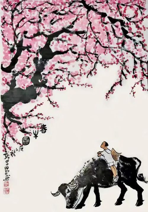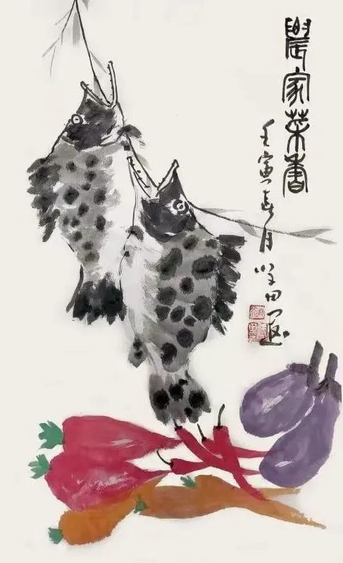 學(xué)田兄繪畫入道雖晚, 但勤奮有加,堅定執(zhí)著,主攻寫意花鳥畫。他憑借著諳熟的書法筆墨線條,與對傳統(tǒng)的敬畏和對自然的情懷,不懈的求索,而備受同道尊重。他筆下的花鳥蟲魚形象逼真,是一種氣質(zhì)的體現(xiàn),呈現(xiàn)出無法中有法的境界,看是不羈,其實蘊藏著嚴謹,用筆雄健老辣,墨色酣暢淋漓,意境古雅幽奇。觀其作品,信筆寫來,從容不迫,得畫外意,令人贊嘆。他畫的《農(nóng)家菜香》、《鬧春》、《喜上眉梢》等作品,來自他對生活的觀察和提煉;他畫的系列寫意虎,線條感強烈,虎的威猛、勇敢、無畏,流淌在筆端;他畫的馬,氣宇宣揚,意氣風(fēng)發(fā),讓人看了熱血沸騰;他筆下李可染的牛,純良溫順,足不踏空,元氣淋漓,獲同道贊揚,寫意畫大家張靜雪賦詩道“先生寫牛筆墨神, 出自生活情更真。可染大師應(yīng)欣慰, 李家畫法有傳人”。“畫如其人”這句話評價學(xué)田兄的畫比較恰當(dāng),有這么博大的胸懷,才能畫出這樣好的畫。
