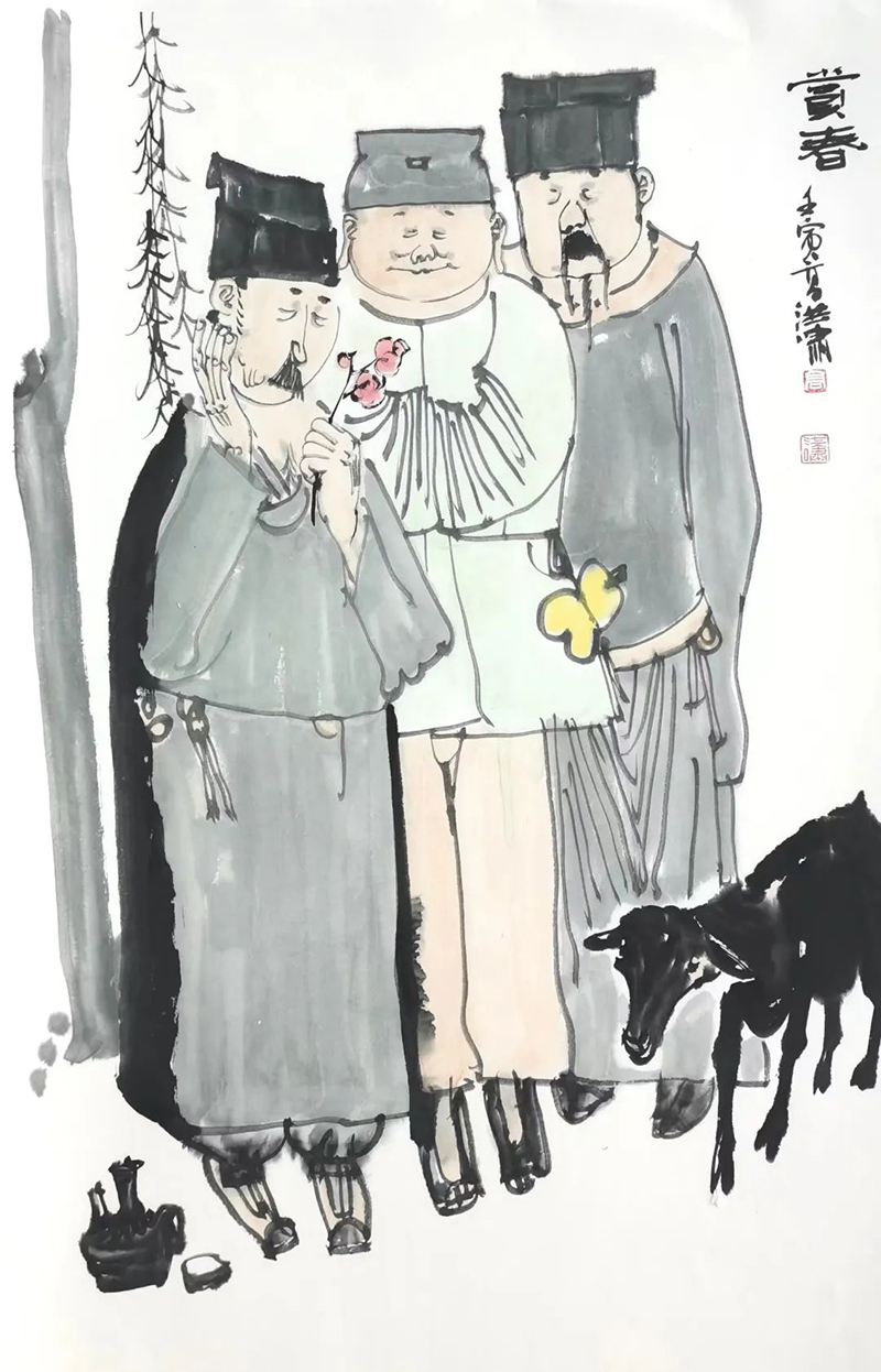 高洪嘯是有影響力的寫意人物畫家。他早年三進(jìn)南藝學(xué)習(xí),獲得過劉海粟獎(jiǎng)學(xué)金,素描、色彩、國畫、油畫、水粉、水彩、連環(huán)畫、宣傳畫、壁畫等都有不同程度的探究。入職徐州國畫院后便一門心思研究國畫人物,其主題性創(chuàng)作作品曾多次入選國家級(jí)重要展覽。九十年代全國性畫展相對較少,能連續(xù)參展且獲得金銀銅等各類獎(jiǎng)項(xiàng)也是同行中為數(shù)不多者。他很快成為中國美協(xié)會(huì)員,并擔(dān)任徐州書畫院院長。
