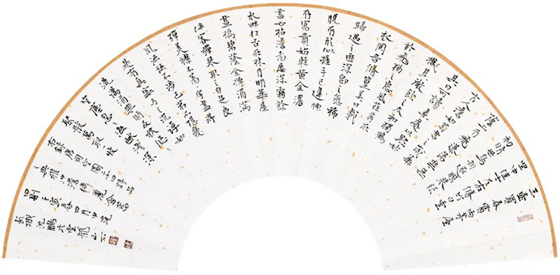扇子是歷史的產(chǎn)物,扇子不僅僅能驅(qū)暑納涼,在中國(guó)的文化史、藝術(shù)史上同樣占有重要一席。扇執(zhí)于手中,是國(guó)人的傳承,更是文化,她來(lái)源于東方,承載著幾千年的藝術(shù)與文明,在中國(guó)一經(jīng)出現(xiàn),便與書(shū)畫(huà)結(jié)下了不解之緣,扇面便成為了中國(guó)書(shū)畫(huà)創(chuàng)作的一種特有的形制,成為專(zhuān)門(mén)的藝術(shù)品種,從而躋身藝術(shù)殿堂。書(shū)畫(huà)家們用這種載體天馬行空,寄托性情,作為東方文人騷客的袖間雅物,國(guó)人至今追捧和喜愛(ài)折扇,實(shí)質(zhì)是文化的賡續(xù)與傳承!渡茸佑酗L(fēng)——七子折扇書(shū)畫(huà)展》的初衷即緣于此。