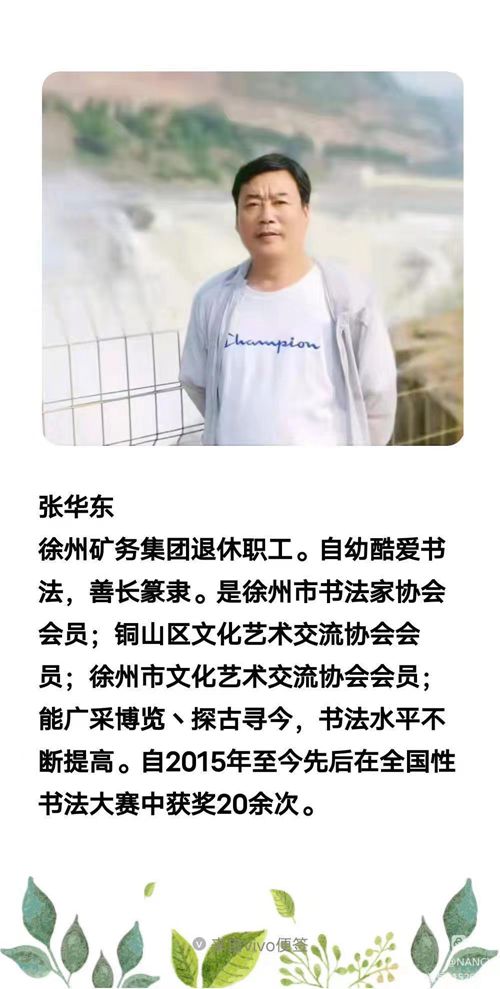 王芳鈺,女 ,1970年出生。江蘇省徐州市人,F(xiàn)為中國(guó)硬筆書(shū)協(xié)會(huì)員、中國(guó)書(shū)法藝術(shù)家協(xié)會(huì)會(huì)員、徐州市書(shū)法家協(xié)會(huì)會(huì)員、徐州文化藝術(shù)交流協(xié)會(huì)會(huì)員、錦繡江蘇書(shū)法院副秘書(shū)長(zhǎng)。其自幼酷愛(ài)書(shū)法,為提高書(shū)法技藝,曾跟隨多位老師學(xué)習(xí)過(guò)書(shū)法,取眾家之長(zhǎng)苦練章法、臨池不斷;隸書(shū)主攻《曹全碑》;后臨王羲之《蘭亭序》、趙孟頫《前后赤壁賦》,曾多次在全國(guó)性書(shū)法大賽中獲獎(jiǎng)。