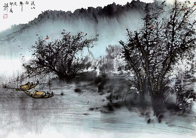 藝術(shù)比生活更有趣,好的藝術(shù)作品,應(yīng)是靈感被激發(fā)后、通過(guò)姊妹藝術(shù)的珠聯(lián)璧合。融入獨(dú)特的筆墨語(yǔ)言,遷想妙得營(yíng)造自己的心境,從而傳對(duì)傳統(tǒng)之認(rèn)識(shí),傳對(duì)技法之妙用,傳對(duì)生活之感悟,傳對(duì)自然之理解,傳內(nèi)在之情思也。