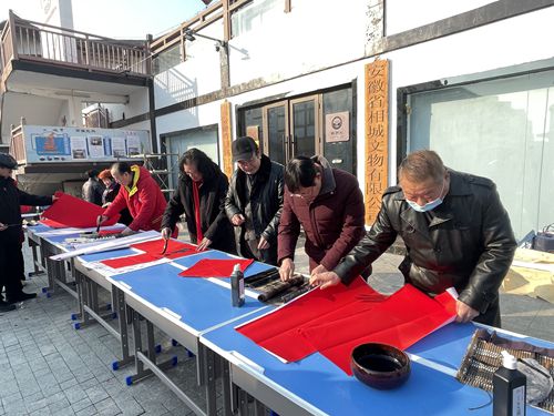黃淮網(wǎng)(宋 梅) 1月28日,淮北市大運(yùn)河美術(shù)館聯(lián)合市書畫藝術(shù)研究會(huì)、相城文物公司、淮北安興古鎮(zhèn)公司開展“龍騰四海 迎春納福”春聯(lián)進(jìn)萬家活動(dòng)。