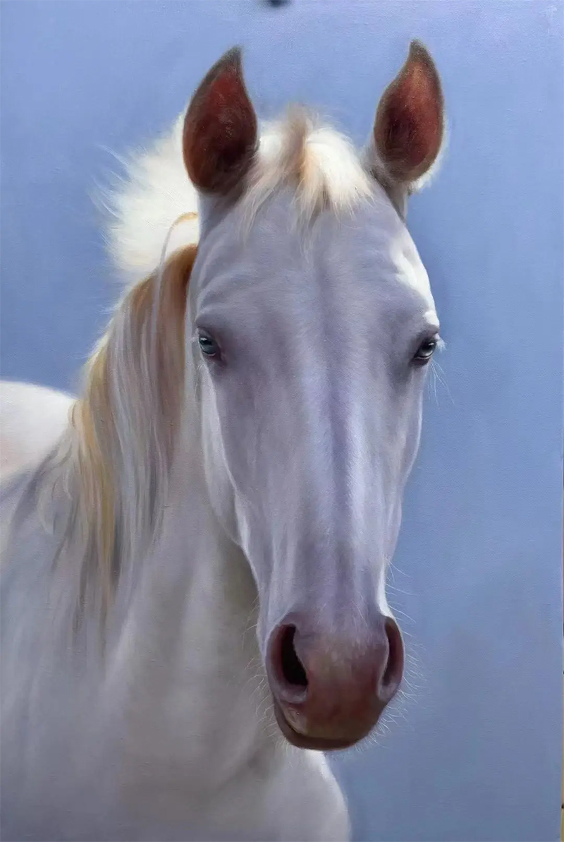 北鴻先生超寫實油畫首先在視覺上給人強烈的震撼,以超寫實主義的手法精確將馬描述出來。他細(xì)致的刻畫了馬的每一個細(xì)節(jié),以至于幾乎可以感受到畫布上充溢來自野性的能量。