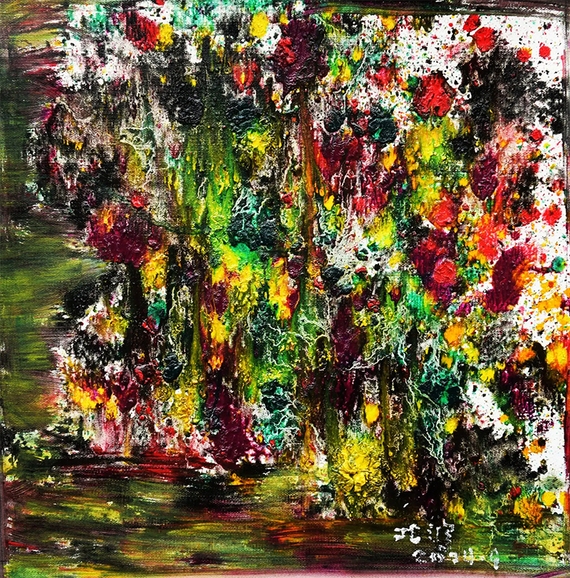北鴻以其精湛的色彩對(duì)比和空間營(yíng)造技法,創(chuàng)造了一個(gè)繁花似錦的花園;▓@中花香四溢,彩蝶飛舞,與情人十指相扣、靜坐在其中,享受著這份寧?kù)o與美好。