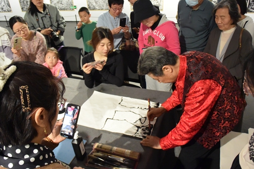 黃淮網(wǎng)(海 桐) 4月26日上午,徐州藝術(shù)館。著名焦墨畫大師馬培童先生舉辦的焦墨畫技藝公開課正在這里進(jìn)行。觀摩聽講者既有老者,也有孩童。