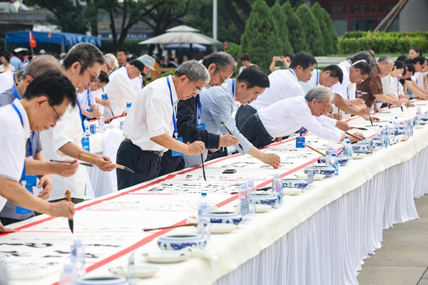 人民網北京8月15日電 (記者 韓鑫) 8月15日9時18分,紀念中國人民抗日戰(zhàn)爭暨世界反法西斯戰(zhàn)爭勝利80周年——80位書法家同書80米長卷活動暨《和平的豐碑——紀念中國人民抗日戰(zhàn)爭暨世界反法西斯戰(zhàn)爭勝利80周年》主題畫冊首發(fā)式在中國人民抗日戰(zhàn)爭紀念館舉行。80位書法家,圍繞“銘記歷史、緬懷先烈、珍愛和平、開創(chuàng)未來”主題書寫書法長卷,共同紀念抗戰(zhàn)勝利80周年。
