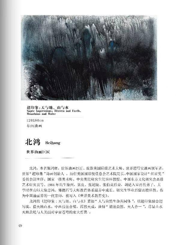 談到自己的創(chuàng)作理念,北鴻說:"我的超印象詩畫風(fēng)格試圖打破寫實與抽象的界限,在具象與意象之間找到平衡點。這幅《超印象:天與地、山與水》不僅是對自然景觀的描繪,更是對天地哲學(xué)的思考,是一種將中國傳統(tǒng)文化精神用世界語言表達的藝術(shù)嘗試。"