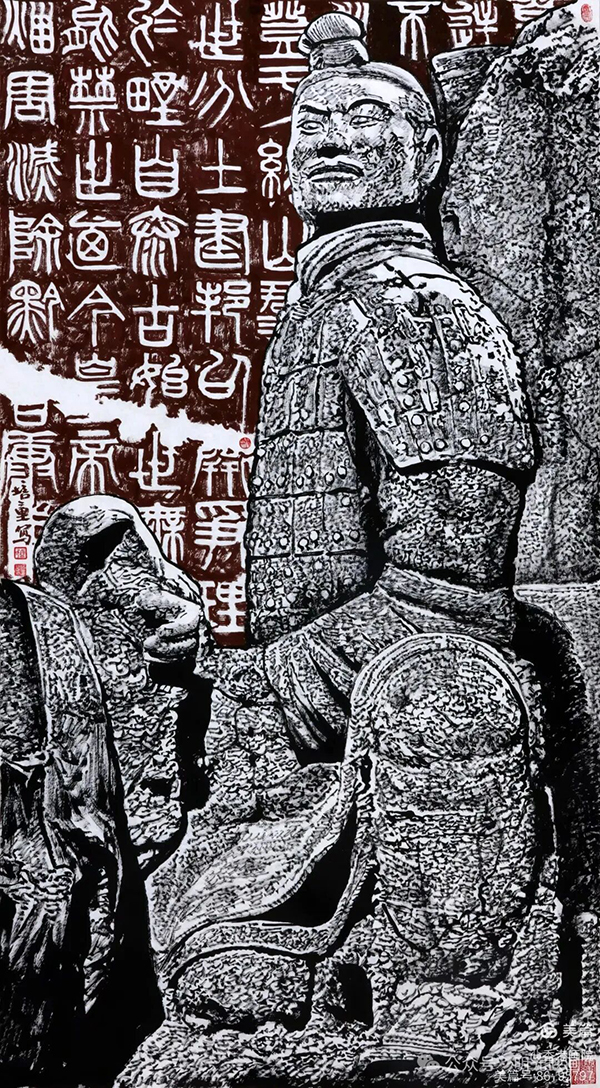 這還不夠。馬培童畫的兵馬俑,乍一看是秦俑的雄渾,細(xì)看卻藏著漢代石刻的蒼勁、唐代造像的靈動(dòng)。陳傳席笑著說(shuō):“他是把中國(guó)美術(shù)史的家底都掏出來(lái),又給你重新縫了件新衣裳!”
