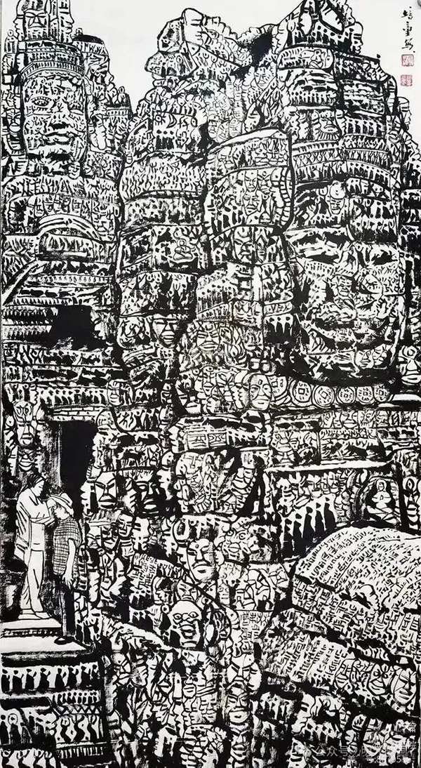 陳傳席對(duì)著一幅巨作《絲路佛光》連連贊嘆:“你看這佛像的臉,眉毛用魚紋皴,細(xì)節(jié)里全是典故!沒研究過(guò)考古、沒啃過(guò)藝術(shù)史的人,根本玩不轉(zhuǎn)這套路!” 他畫的不僅是墨,是把漢代的大氣、唐代的輝煌、印度的神秘、埃及的古老,都塞進(jìn)了宣紙的方寸之間。