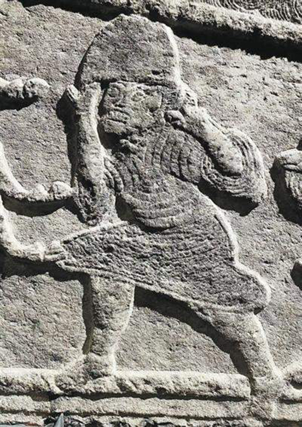 東漢畫像石《力士圖》(局部)。陸金玉攝
