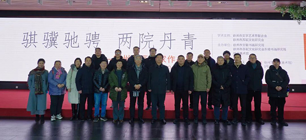 展覽現(xiàn)場(chǎng),徐州市文聯(lián)黨組書記虞濤,黨組成員、副主席林昊到場(chǎng)參觀。他們細(xì)致觀摩了每一幅作品,對(duì)兩院藝術(shù)家的創(chuàng)作水準(zhǔn)和展覽的學(xué)術(shù)性、豐富性給予了高度評(píng)價(jià)。