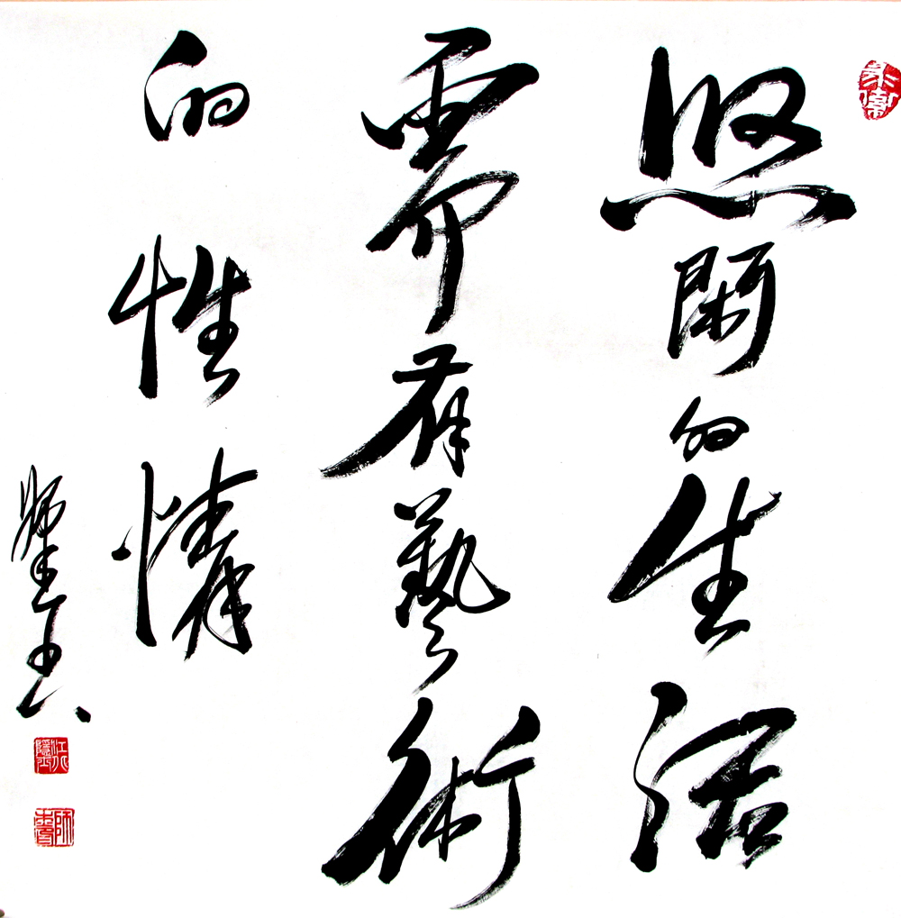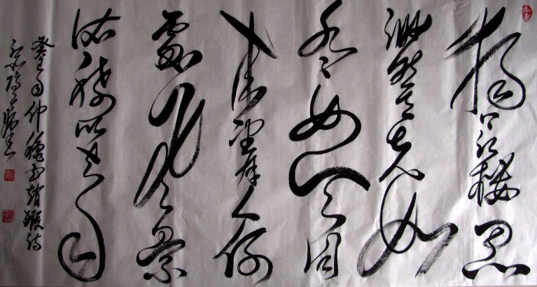 2002年,師杰受邀參加文化部組織的中國藝術(shù)家赴新加坡藝術(shù)交流活動,并攜作品在新加坡美術(shù)總會展出,期間受到中華人民共和國駐新加坡特命全權(quán)大使張久桓先生和新加坡南洋藝術(shù)學(xué)院院長何嘉良博士的熱情接待,品評其書作“既大氣磅礴,又靈動飄逸,大有張旭雄逸氣象”。 2006年參加《中國.山西——國際書畫藝術(shù)展覽會》,我國著名外交家、展覽組委會主席凌青先生,在其作品前駐足凝神,贊譽作品 “筆走龍蛇、揮毫掣電、氣勢奔放、剛健雄渾,頗具懷素遺風,乃當代草書翹楚爾”,并欣然在作品前合影留念。 師杰深受“中國書畫藝術(shù)之鄉(xiāng)”的人文熏陶,自幼追慕劉開渠、朱德群等蕭縣籍國內(nèi)外著名藝術(shù)大師,深得鐘鳴天、張得蒂、李書德等藝術(shù)前輩教誨,當代藝術(shù)大家何朝坤、賈崇等是其良師益友,時常鞭策鼓勵。歷經(jīng)四十余春秋之潛心研習(xí)、切磋琢磨,深悟董其昌 “離合”要義、王鐸“入而能出”之精髓,學(xué)古而變、推陳出新、博采眾長,為己所化。其書作揮灑“顛張醉素”之氣勢,彰顯豐姿跌宕之意象,神采飛揚、氣韻流動、筆力遒勁、筆勢蕩漾,縱筆隨意汪洋恣肆而能斂,酣暢淋漓激電驚雷任逍遙;于平正中見險絕,于規(guī)矩中露飄逸;無色而具畫圖之燦爛,無聲而有音樂之和諧。當代書界泰斗權(quán)希軍先生觀其作品后,潑墨揮毫題寫了:“當代草書翹楚師杰”,褒揚肯定其書法藝術(shù)成就。 源遠流長博大精深的書法藝術(shù)與時俱進,師杰書法藝術(shù)以其獨特的個性、鮮明的特色、強烈的視覺沖擊力和藝術(shù)感染力,流露出其率真自然的心跡,抒發(fā)出豁達陽光的情懷,使其作品表現(xiàn)出激越昂揚的生命力量。讓我們欣然走入其書作中,留戀徜徉、物我兩忘,盡情享受他所帶來的美的藝術(shù)的饕餮大餐! |