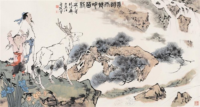 | 范曾(1938-),字十翼,別署抱沖齋主,江蘇南通人,中國(guó)當(dāng)代著名學(xué)者、思想家、國(guó)學(xué)大師、書畫巨匠、文學(xué)家、詩(shī)人,F(xiàn)任北京大學(xué)中國(guó)畫法研究院院長(zhǎng),中國(guó)藝術(shù)研究院終身研究員,南開大學(xué)、南通大學(xué)惟一終身教授,聯(lián)合國(guó)教科文組織“多元文化特別顧問(wèn)”。為當(dāng)代中國(guó)集詩(shī)書畫、文史哲、儒釋道于一身的文化大家,平生著作等身,有約一百五十種詩(shī)、書畫、哲學(xué)之著述,國(guó)家圖書館珍藏其中119種。1984年日本岡山范曾美術(shù)館建立;2007年南通大學(xué)范曾藝術(shù)館揭牌。有二十四字自評(píng):癡于繪畫,能書;偶為辭章,頗抒己懷;好讀書史,略通古今之變。