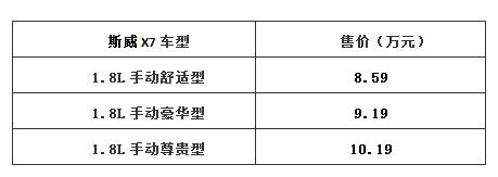 7座SUV斯威X7正式上市 售價(jià)8.59-10.19萬元