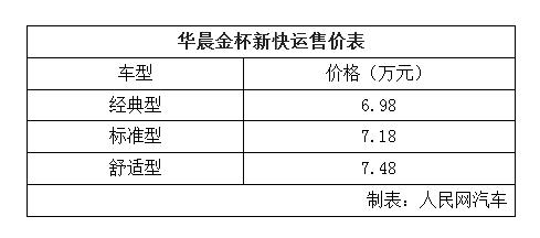 金杯新快運正式上市 售價6.98-7.48萬元