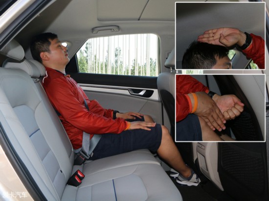 保持前排位置不變,體驗者坐進后排,頭部有四指的剩余空間,腿部有一拳零四指空間。