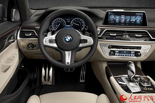 內(nèi)飾設(shè)計上,寶馬M760Li xDrive采用了全新樣式的三輻多功能方向盤,加入了金屬踏板,中控臺選用鋼琴漆色飾板,并在多處配備有V12特別標識。