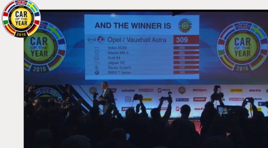 2016年前夕,每年一度的Car of the Year評(píng)選如月召開,環(huán)球網(wǎng)汽車頻道記者在日內(nèi)瓦前先發(fā)來報(bào)道,今年在40款入圍新車中,Car of the Year榜單共有7款車上榜,其中歐寶ASTRA以309票當(dāng)選最佳年度車,此外同時(shí)入選的還有沃爾沃XC90、奧迪A4、捷豹XE、寶馬7系等入門新車。