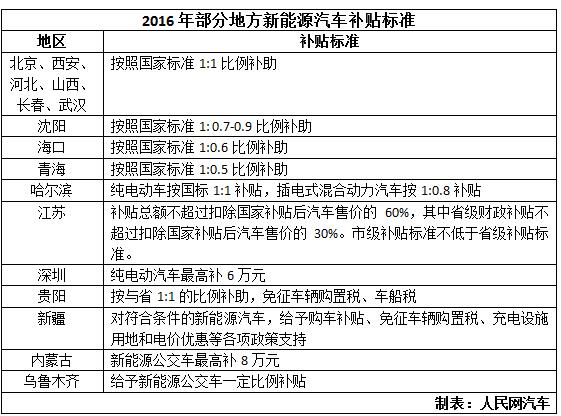近日,2016年新能源汽車地方補貼標準陸續(xù)出爐。截至3月,已有北京、深圳、河北等16個省市明確了補貼標準。相比2015年的補貼標準,部分地區(qū)如江蘇、海口、青海、沈陽等地略有收緊。在地方補貼政策懸而未定的地區(qū),呈現(xiàn)出多種銷售模式并存的狀態(tài)。