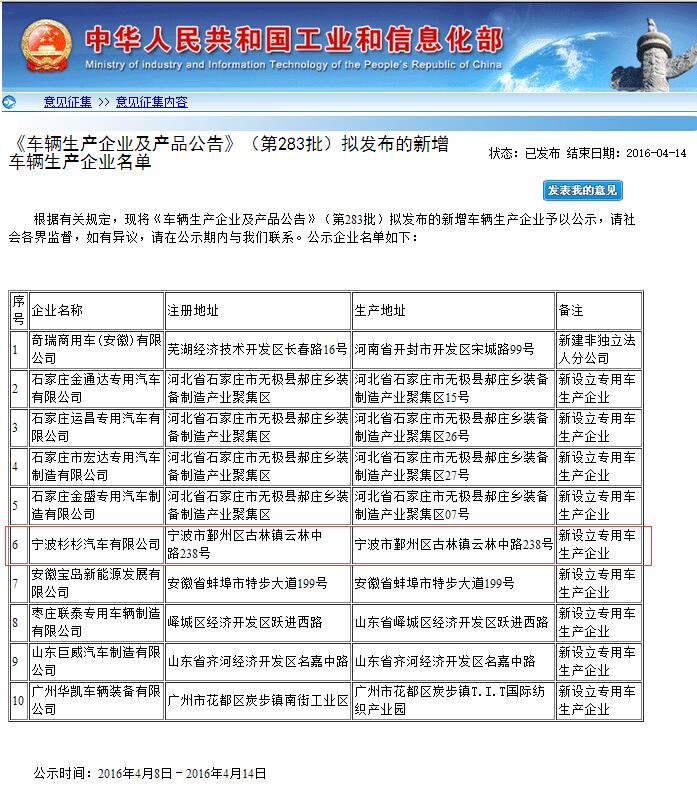 繼互聯(lián)網(wǎng)企業(yè)、家電企業(yè)進(jìn)軍整車制造業(yè)后,以生產(chǎn)西服起家的杉杉也來造車了!近日,工信部公布擬新增汽車生產(chǎn)企業(yè)名單,寧波杉杉汽車有限公司(以下簡稱“杉杉汽車”)名列其中,備注信息顯示為“新設(shè)立專用車生產(chǎn)企業(yè)”。