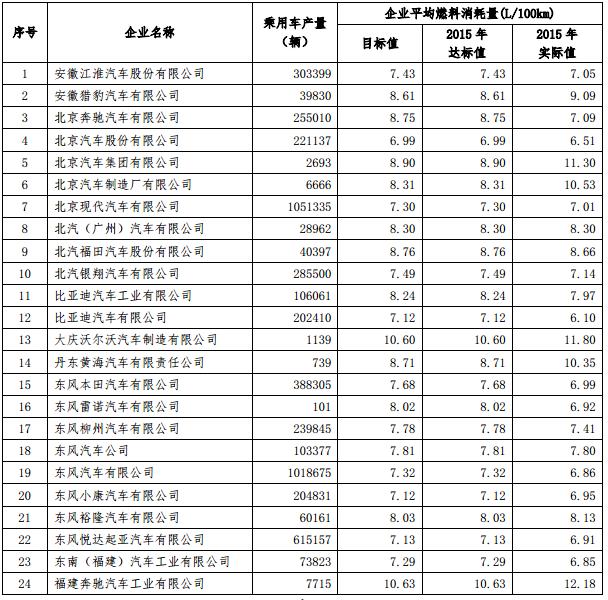 本土車企中,北京汽車、慶鈴汽車、丹東黃海、河北紅星、廈門金龍、江蘇九龍、福建奔馳、浙江飛碟汽車制造有限公司、大慶沃爾沃、江鈴控股、河北中興、慶鈴汽車、貴航青年蓮花汽車、陜西通家、沈陽華晨金杯、安徽獵豹、鄭州日產(chǎn)、海馬商務(wù)汽車、廣汽吉奧、重慶力帆、東風(fēng)裕隆等22家企業(yè)平均燃料消耗量未達(dá)標(biāo)。
