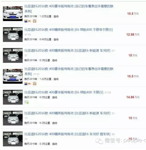 一年,虧了一半?!我不信。于是,我又開始看比亞迪E6,作為續(xù)航達(dá)到300公里的電動車,應(yīng)該保值率還可以吧。北京新車補(bǔ)貼后的價格在30萬元不到,結(jié)果二手...