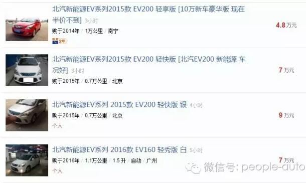 這公里數(shù)!這保值率,額滴神!我不信,我又看了看北汽的EV系列。新的EV/150/160價格在8-9萬,EV200在11-14萬?墒沁@1年之內(nèi),幾千公里的準(zhǔn)新車的保值率也不高!