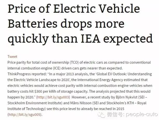 于是我開始看國外的新聞,有關(guān)電動車的行情:首先是,電動車的動力電池全球價格都在下降。