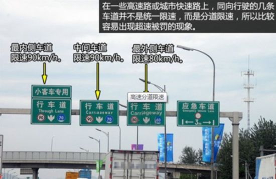 在這里我想和大家分享的是,有些高速公路或城市快速路上,是實行分道限速的,同一方向的多條車道限速并不一樣,以北京的機(jī)場高速和五環(huán)路為例,機(jī)場高速最內(nèi)側(cè)車道的最高限速為120km/h,而最外側(cè)車道則是90km/h;同樣北京的五環(huán)路也是實行分道限速,中間車道和最內(nèi)側(cè)車道最高限速為90km/h,最外側(cè)車道為80km/h。所以大家開車行駛在高速路或城市快速路上時,一定要仔細(xì)觀察限速標(biāo)識,避免出現(xiàn)我同事那樣被罰的事情。
