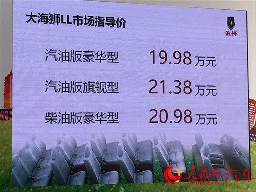 人民網北京8月14日電(吳曉琴)14日,華晨金杯大海獅LL在北京正式上市。新車共推出搭載兩種動力的3款車型,售價區(qū)間為19.98-21.38萬元。