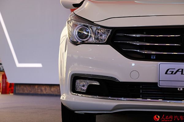 GA3S 200T采用廣汽傳祺最新家族設計—Flying Dynamics凌云翼元素,進氣格柵采用三橫條鍍鉻裝飾。大燈造型采用了鷹眼狀,并且配備還帶有透鏡,整體造型比較耐看、搶眼。