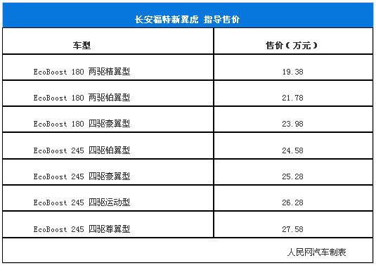 長(zhǎng)安福特翼虎正式上市 售價(jià)19.38-27.58萬(wàn)元