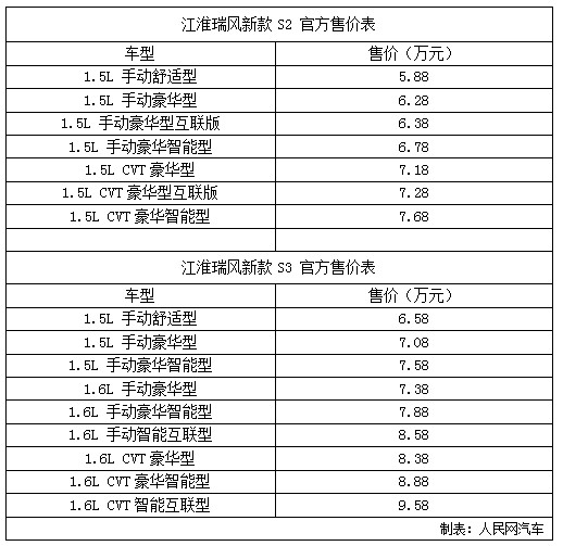 江淮新款瑞風(fēng)S2、S3正式上市 售5.88萬元起